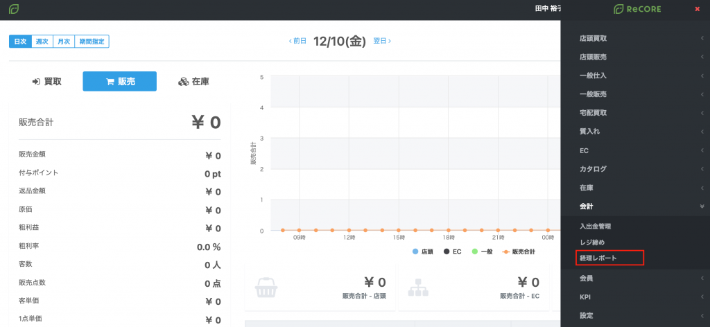 RECOREで計上された仕入金額や売上金額などについて、日次、週次、月次毎の集計金額を会計処理に利用されたい場合には「経理レポート」をご利用ください。