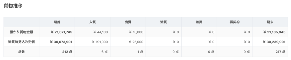 2 | 流質時見込み売価 | 指定した期間の預り物における「見込売価」の合計金額 |