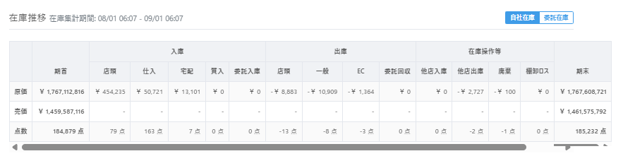 「在庫推移」の集計データの取得反映について