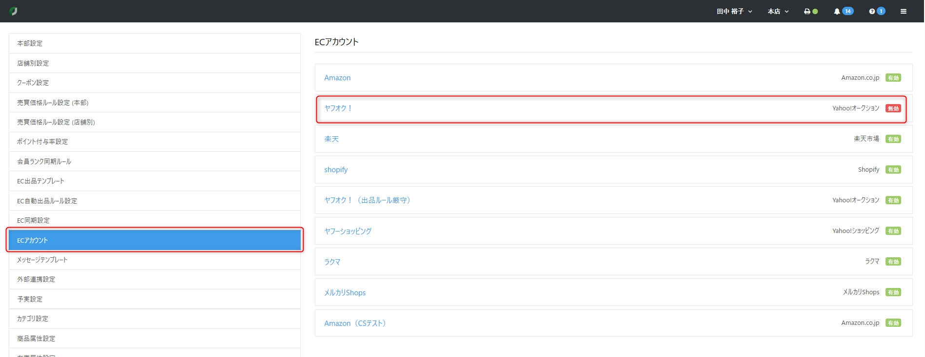 各ECアカウントの連携が『無効』になる要因は、各ECモール毎に状況が異なります。