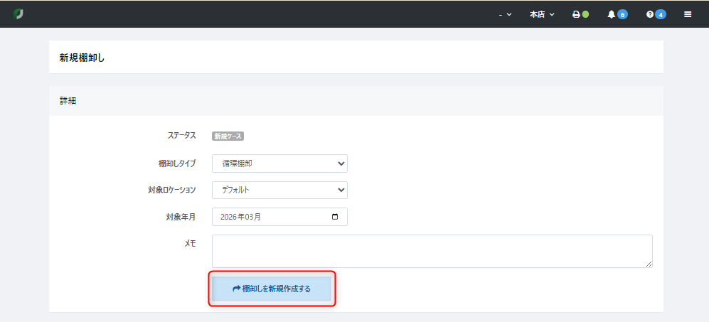 棚卸作業を管理するための「棚卸ケース」を作成します。