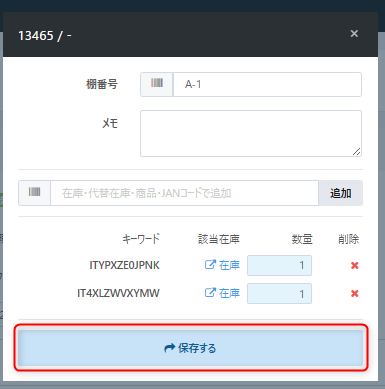 在庫の棚番号も空白に上書きされますのでご注意ください。