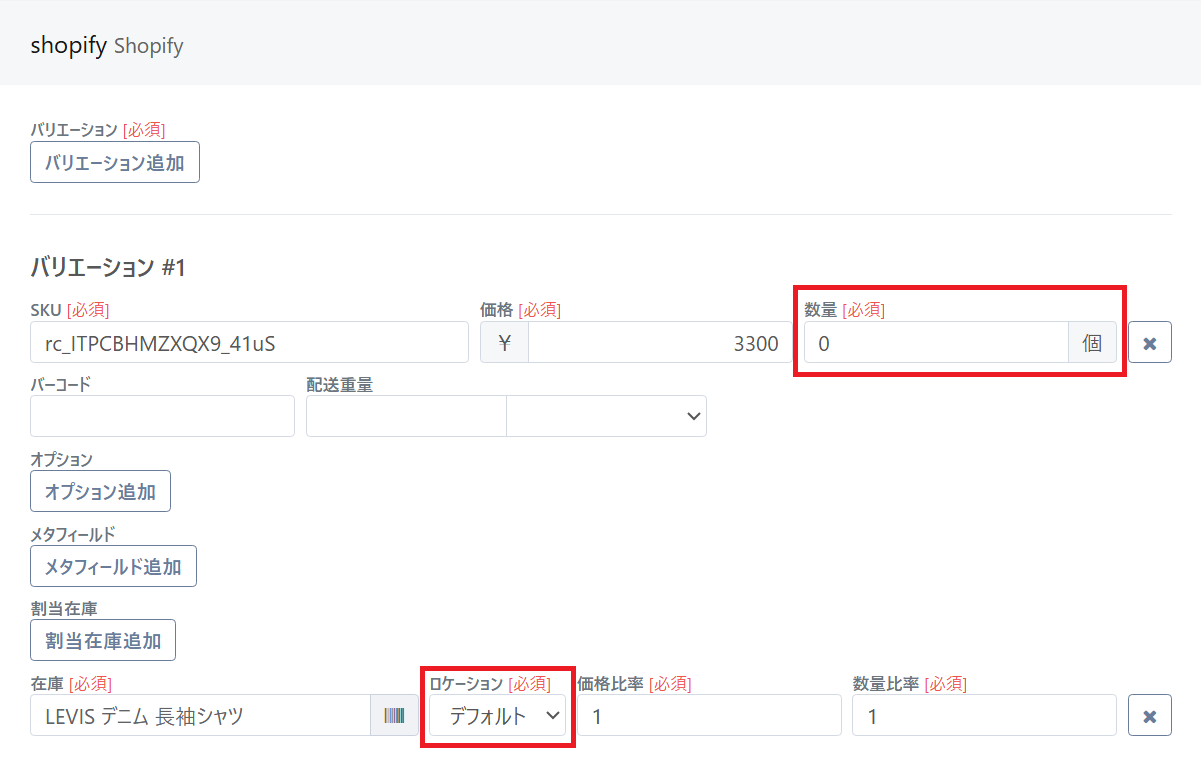 倉庫のロケーションIDはそれぞれ以下を入力します。