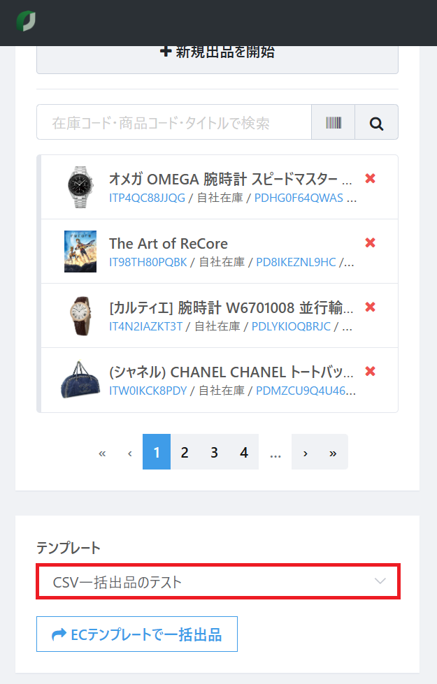 ECの【出品待ち】画面より、出品に使用するEC出品テンプレートを選択します。