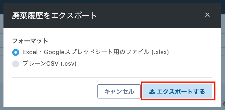 基本は、Excelデータを選んで【エクスポートする】をクリックします。