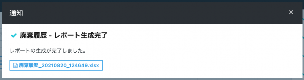 1時間以上経過しても生成完了メッセージが通知されない場合は、サポート窓口までお問合せください。