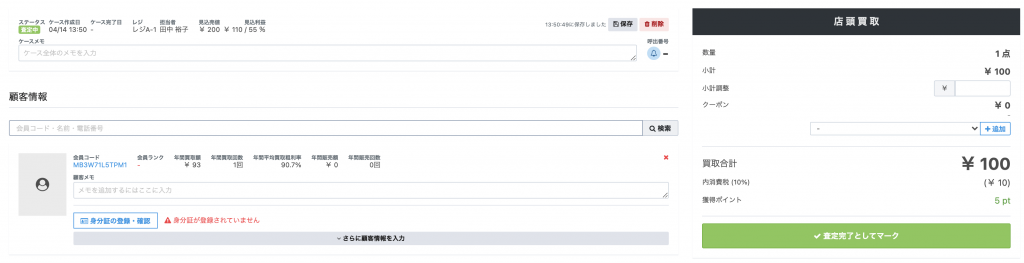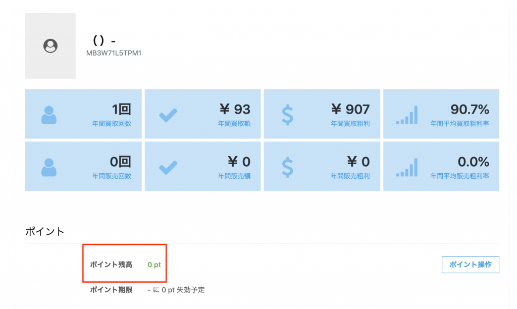 上記設定で、買取時に支払い方法に「クレジットカード」を選択されますとポイントを付与しないようにすることが可能となります。