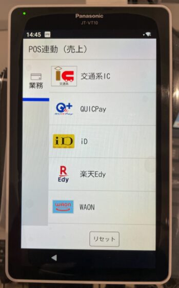 決済端末側に表示された使用可能な電子マネーより、該当する電子マネー名をクリックします。