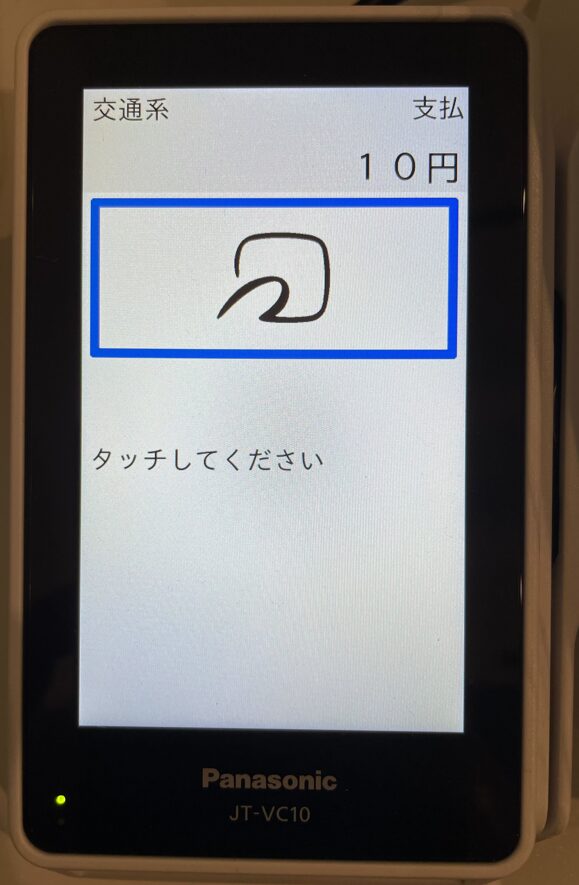 読み取り機側に表示された『カードをどうぞ』という画面より、決済(暗証番号の入力など)を行います。