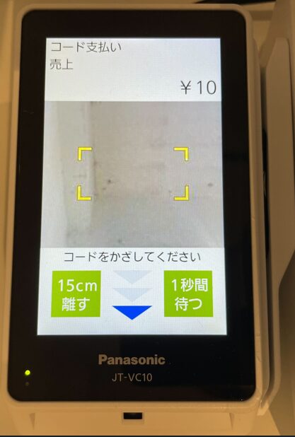 読み取り機(JTーVC10)のカメラが起動後、黄色い枠内にバーコードが入るよう読み取りを行います。