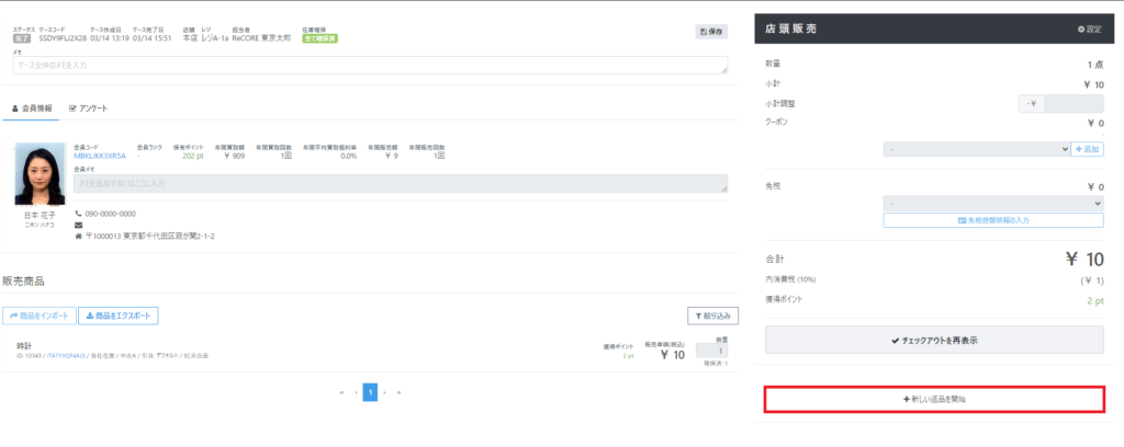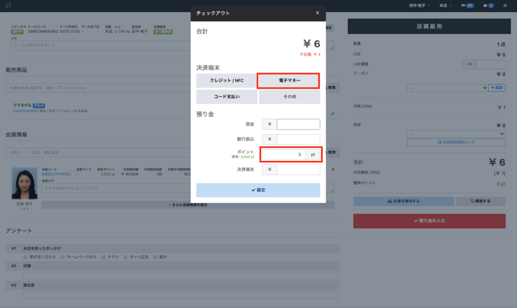 ※ケースの「会員情報」において、会員呼び出し登録されていない場合、ポイント表示がされませんので、ご注意ください