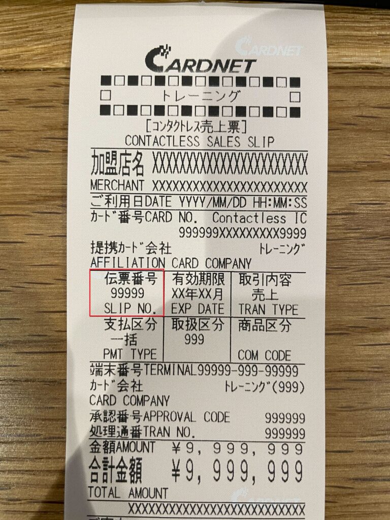 決済端末側が起動しますので、販売時に決済端末より印刷された「お客様控え」レシートを用意のうえ、案内に沿って必要事項を入力します。