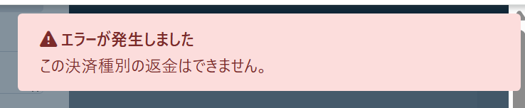 電子マネー支払いの場合、RECOREから返金処理を行うことができず、以下の画像のようにエラーが表示されます。