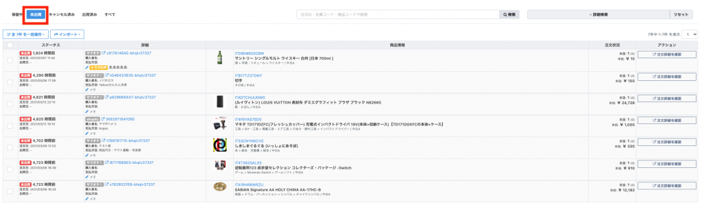 RECOREではECモールに出品した商品が受注され、未発送となっている場合