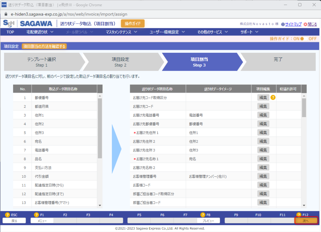▼ガイド:佐川e飛伝へのCSV取込設定方法