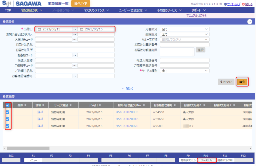 ▼【エクスポート(出荷伝票)】より操作する場合(2025年12月末以降)