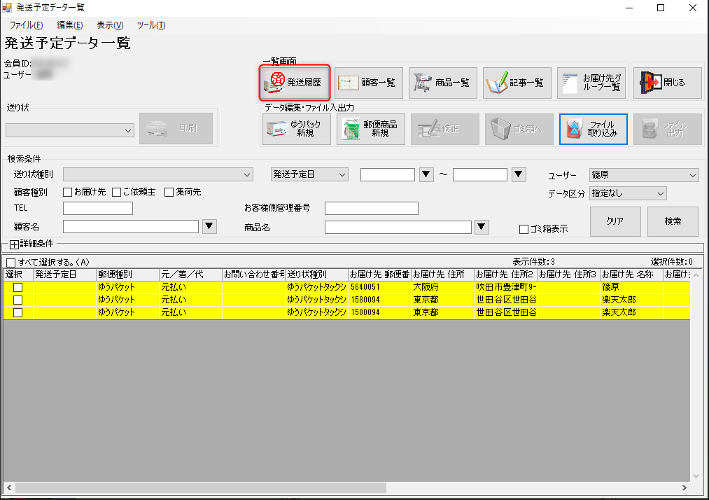 ・各配送会社より出荷伝票印字済のデータをファイルを選択する