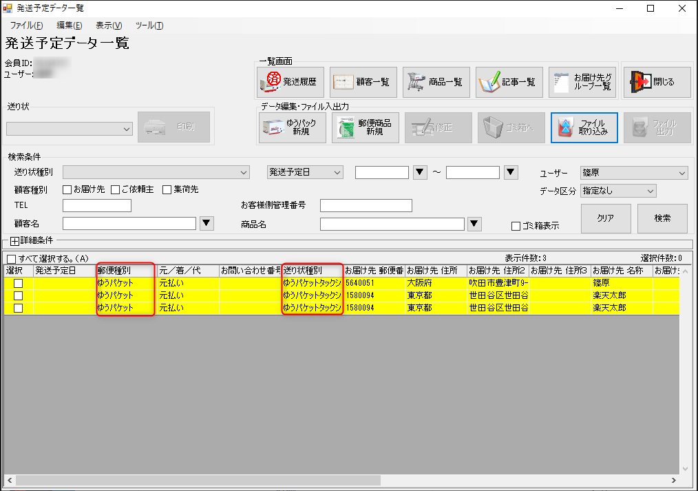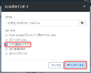 ※上記の画像はヤマト運輸の「B2クラウド」システムからのデータをインポートする場合