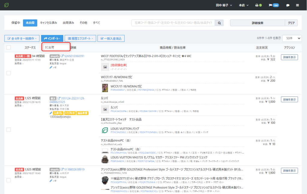 【EC>受注管理】より 『未出荷』ステータスに対象の商品が表示される