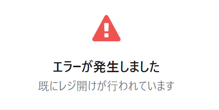 「レジ開け」をされたままの状態で、再度レジ開けを操作すると以下の様にエラーが表示されます。