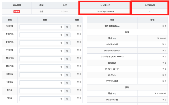 本日まだ「レジ開け」を行っていない場合、前日の営業日に「レジ開け」後に「本締め」されていない可能性がございます。