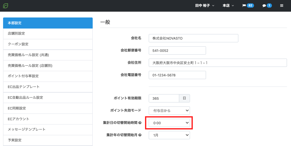 また、【経理レポート】や【KPI>買取・販売分析】においても上記の「集計日の切替開始時間」を基準として集計表示されております。