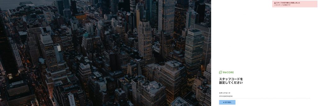 また、ステータスを『停止』に変更されたスタッフコードでログインしよう場合には、『このスタッフは無効です』というエラーメッセージが表示され、ログインすることはできません。