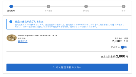 売却する場合は、【本人確認情報の入力へ】をクリックします。