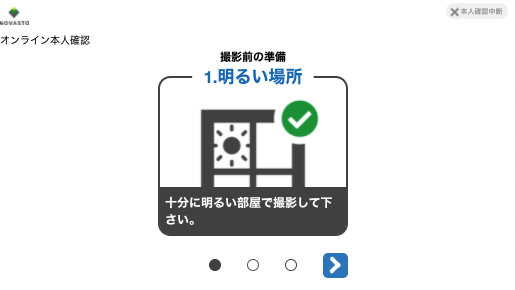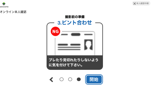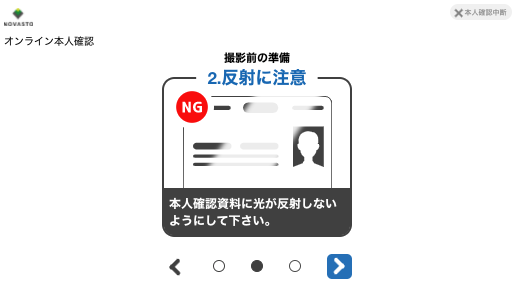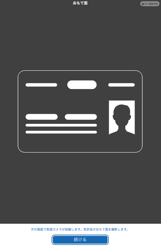 その後、身分証の撮影方法の案内に従って、身分証の写真撮影とお客様の画像及び動作撮影を行います。
