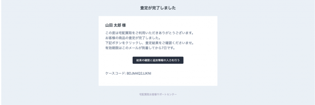 お客様は、届いた査定完了通知(メール・SMS)より査定結果を確認します。