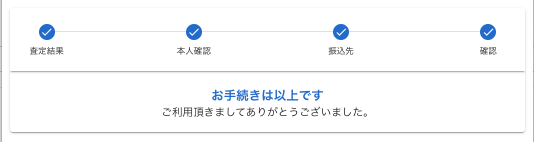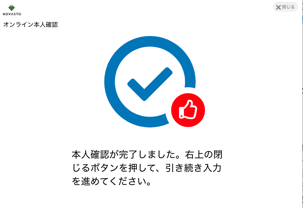 身分証で本人確認が完了すると、次のようなメッセージが表示がされます。