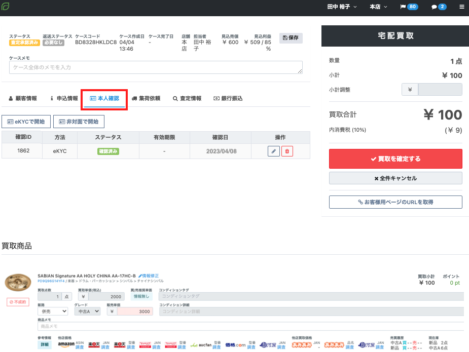 宅配買取機能のご利用申込に対して、eKYC機能をご利用されたい場合は別途お申し込みが必要となります。