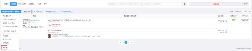【選択中の○件を一括操作】をクリックし、【出荷処理】をクリックします。