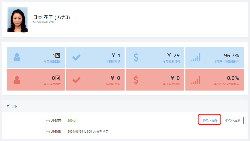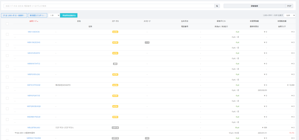 そのため、各会員の詳細画面より【ポイント操作】を行ってください。