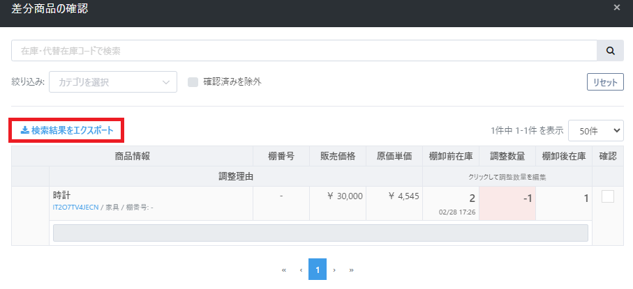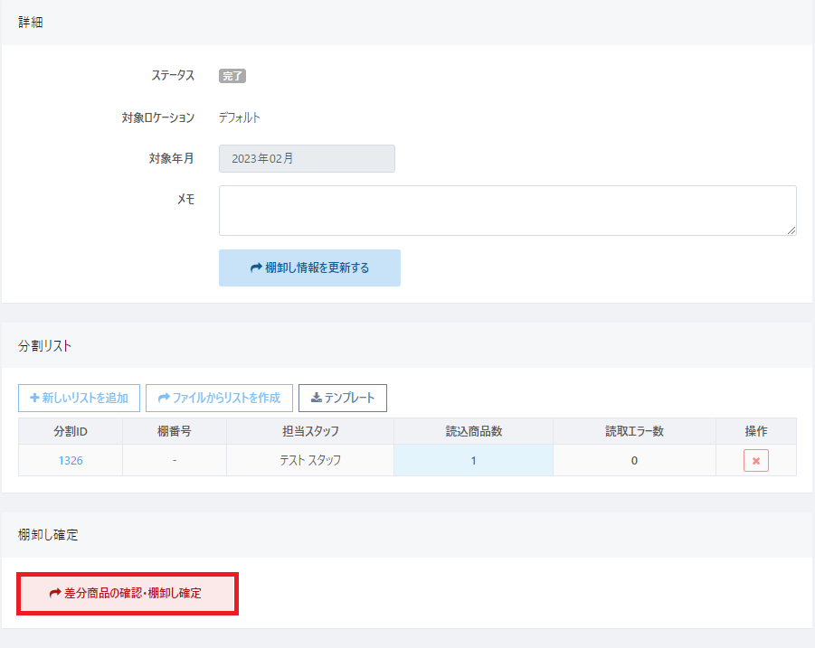 ②【差分商品の確認・棚卸し確定】ボタンをクリック
