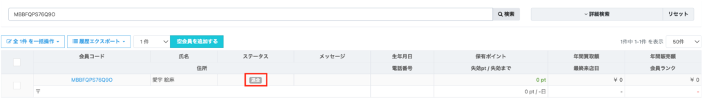 なお、会員リストで確認した際には、ステータス『退会』と表示されます。