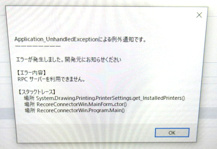 原因:PC内のRECOREコネクターに関するファイルが一部破損している可能性があります。