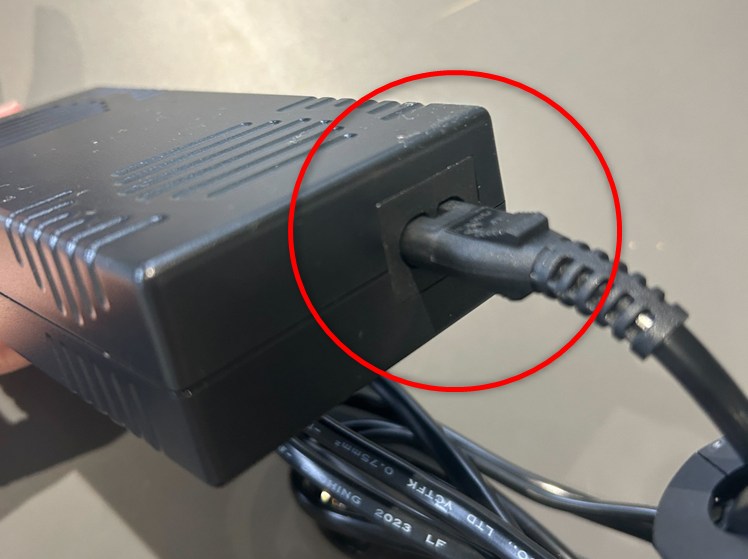 ▼ACアダプターのつなぎ目はしっかりと差し込みます。