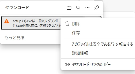 『安全でないダウンロードがブロックされました』の右横にある【保存】をクリックしてダウンロードを完了します。