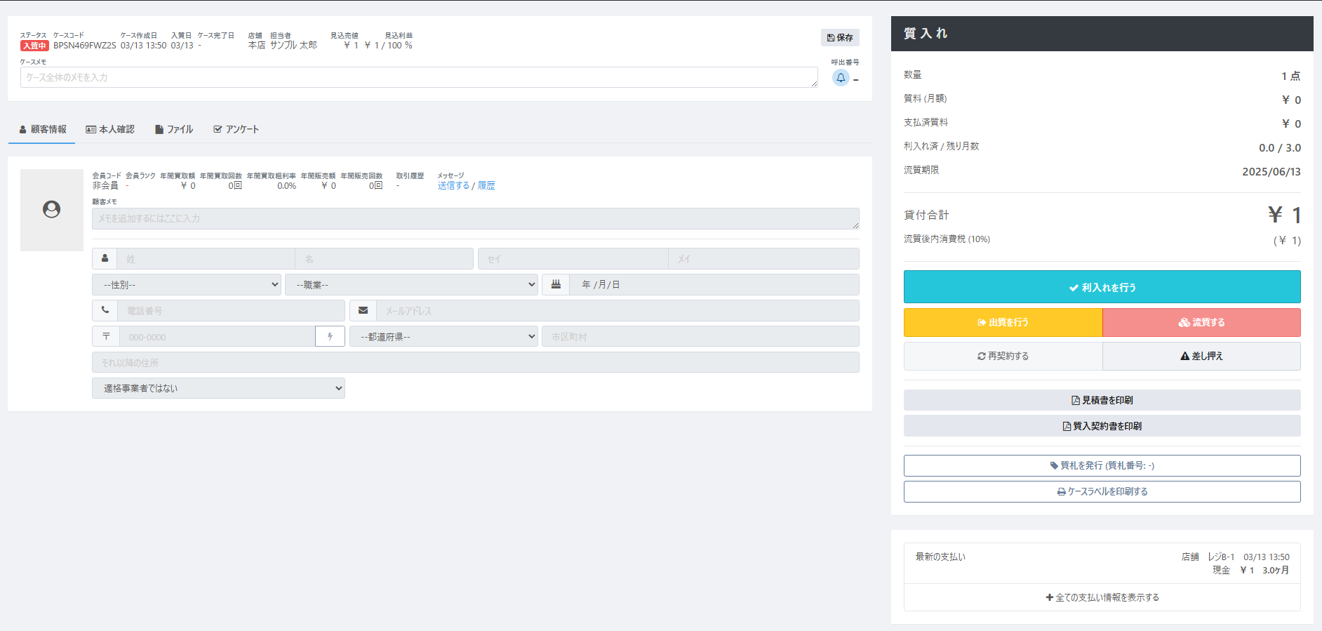 ▼質入ケース詳細