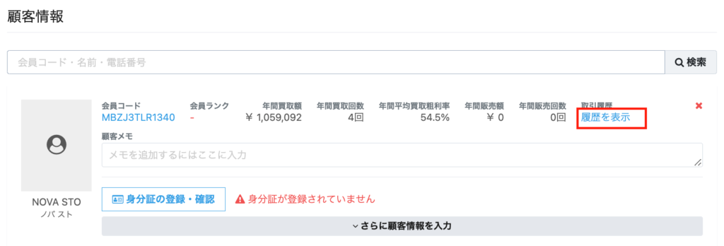 会員登録されているお客様の場合、店頭買取において会員コードを入力のうえ買取履歴を確認することが可能ですので、接客時にお役立てください。