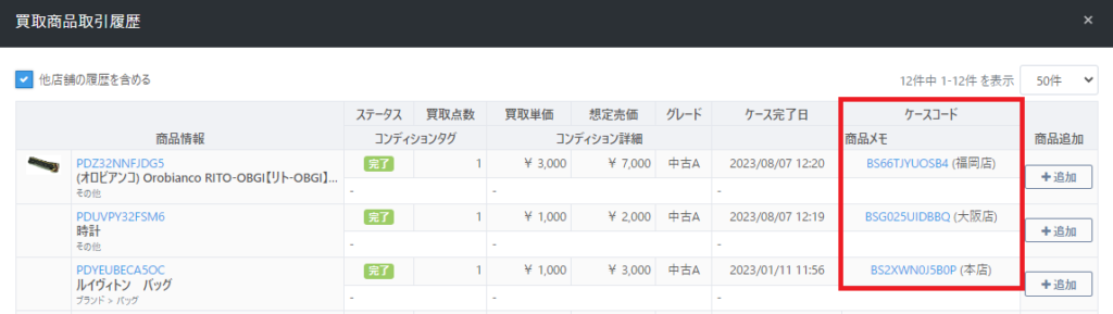 また、会員が他店舗での買取履歴を確認することが可能です。