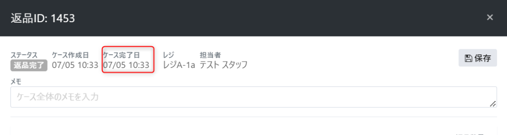 ※なお、「返品完了日」は、返品ケースの「ケース完了日」です。