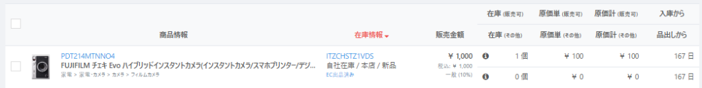 在庫を指定後にEC出品テンプレートを選択すると、次のように表示されます。