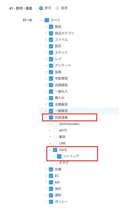 ▼【ポリシー】外部連携>TAYS>コンフィグ