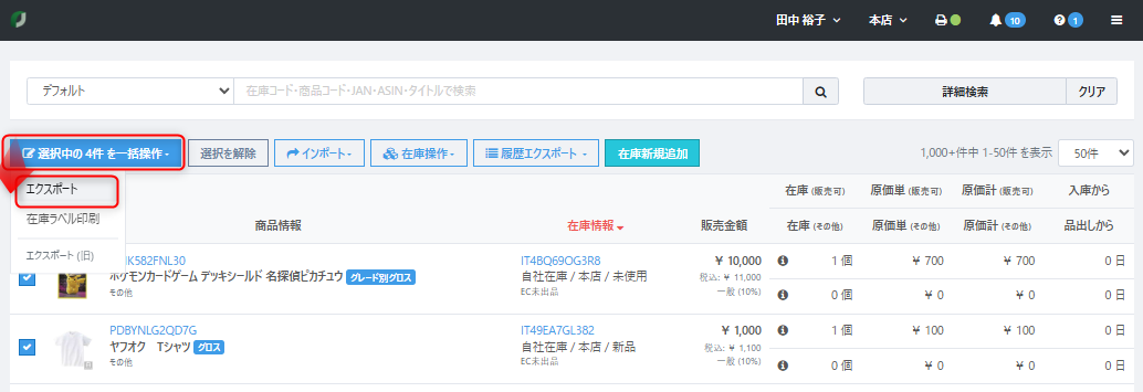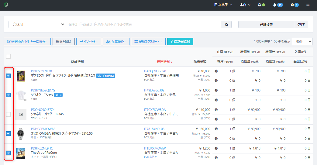 更新したい在庫データの左側にチェックをつけます。
