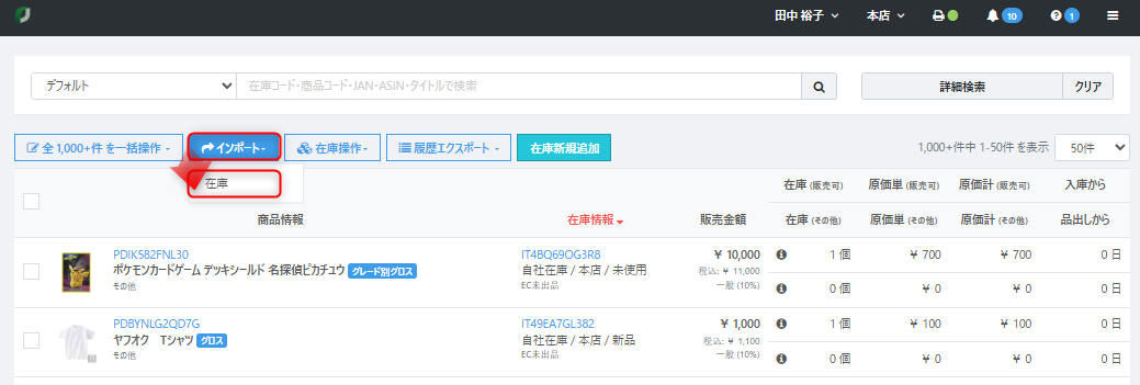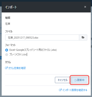 在庫データをインポートして更新した場合
