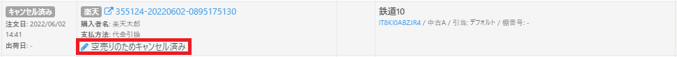 この場合、『受注キャンセル』を行った該当受注のメモに空売りが発生したことが把握できるよう詳細を残していただくこともご検討ください。