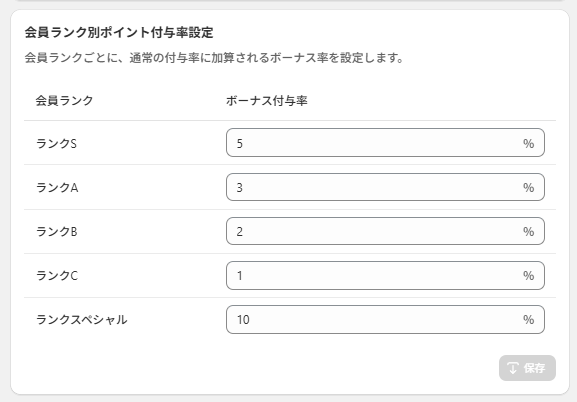 「会員ランク別付与率設定」