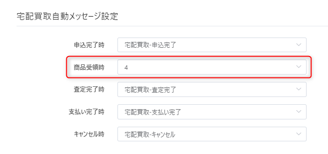 ②保存後【宅配買取自動メッセージ設定】では以下のように数字が表示されます。